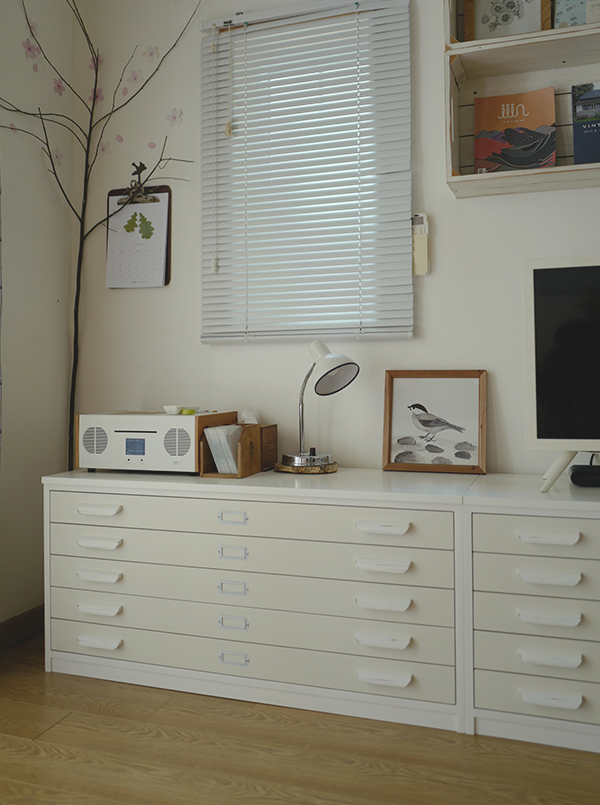 아날로그 감성이 담긴 지류서랍장을 화이트색감으로 제작을 하였습니다.
