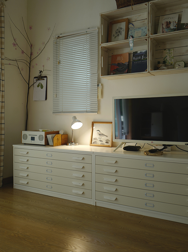 우드컬러의 지류서랍장에 비해 화이트컬러는 가구가 놓이는 공간을 밝고 넓은